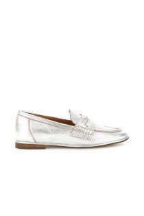 mocasín de piel laminada con presilla tejida silver