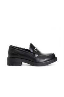 Mocasín de mujer en piel sintética cepillada con detalle de trabilla y hebilla. la plantilla es de piel.