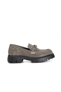 Mocasín de mujer en ante con mignon. el forro y la plantilla son de piel. meseta de 25 mm de altura. tacón de 40 mm.