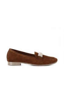 Mocasines de ante con lazo de pedrería a juego decorado con pedrería