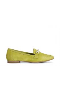 Mocasines de mujer en piel de ante con mignon de pedrería. plantilla de piel. tacón de 12 mm de altura.