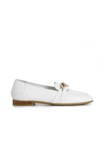 Mocasines de piel para mujer adornados con una cadena. la plantilla es de piel. tacón de 15 mm de altura. un modelo versátil y dinámico ideal para completar muchos conjuntos.