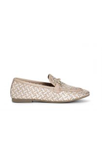 mocasines de mujer en piel trenzada con bocado multi beige