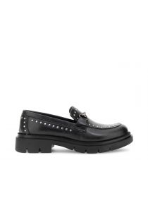 Mocasines de piel con detalle de caballo y tachuelas decorativas. Diseño atrevido y femenino, suela dentada y tacón de 3,5 cm. Forro y plantilla de piel. Elegancia y personalidad para el día a día.