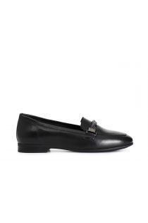 Mocasines de piel para mujer adornados con un accesorio de pedrería. la plantilla es de piel. tacón de 15 mm de altura. un modelo versátil y dinámico ideal para completar muchos conjuntos.