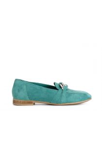 Mocasines de piel de ante para mujer adornados con un horsebit de cadena. la plantilla es de piel. tacón de 15 mm de altura. un modelo versátil y dinámico ideal para completar muchos conjuntos.