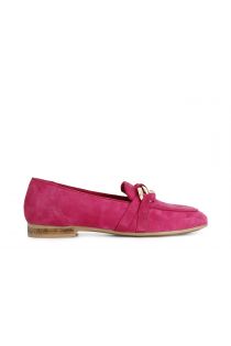 Mocasines de piel de ante para mujer adornados con un horsebit de cadena. la plantilla es de piel. tacón de 15 mm de altura. un modelo versátil y dinámico ideal para completar muchos conjuntos.