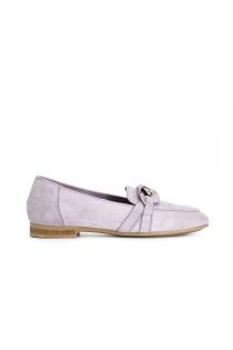 Mocasines de piel de ante para mujer adornados con un horsebit de cadena. la plantilla es de piel. tacón de 15 mm de altura. un modelo versátil y dinámico ideal para completar muchos conjuntos.