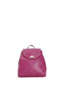 mochila acolchada con estampado de rombos y solapa acolchada hot pink