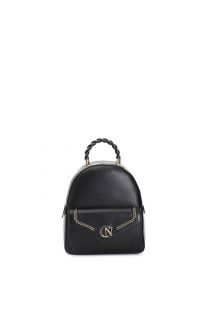 mochila con aplicación de cadena metálica y logo. black