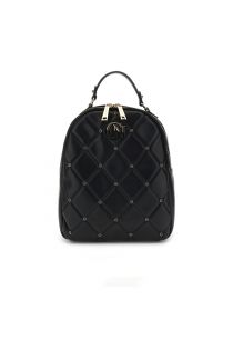 mochila con colcha de rombos con aplicación de remaches y logo bicolor black