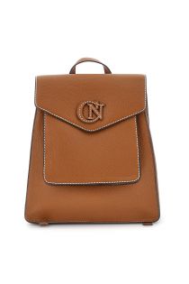 mochila con efecto piel granulada, solapa y logotipo cosido. tan