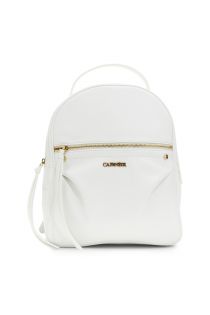 mochila con efecto piel granulada suave y aplicaciones de remaches metálicos. white