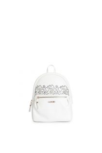 mochila con flores cortadas a láser, bolsillo con cremallera y detalles decorativos white