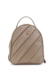 Mochila de piel sintética con detalle plisado en la parte delantera, bolsillo con cremallera en la parte trasera, asa acolchada, logo Café Noir de metal, correas de hombro ajustables con hebilla.