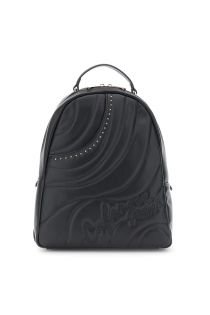 Mochila de piel sintética con acolchado ondulado y remaches decorativos. Cuenta con un bolsillo frontal y un asa superior. Estilo urbano y detalles refinados.