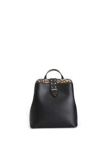 Mochila rígida con división con cremallera estampada. mochila adornada con hebilla con micro tachuelas doradas y logotipo. tirantes ajustables.