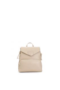 mochila de piel sintética con bolsillo redondo con cremallera, bolsillos laterales con cremallera hazelnut