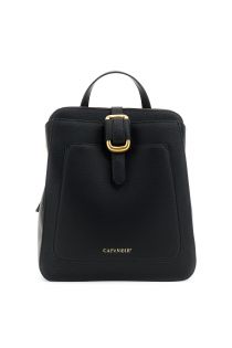 Mochila de piel saffiano sin forro con bolsillo frontal plano. El logotipo Café Noir grabado y los herrajes dorados le aportan un toque de elegancia urbana.