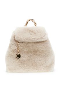 mochila suave con detalle de pelo y cadena. camel