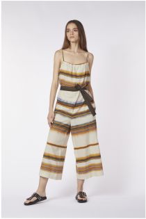 mono ancho en tejido de mezcla de lino estampado shaded line