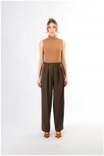 Pantalón ancho recto con pliegues en la parte delantera y cintura ligeramente alta confeccionado en tejido bi-stretch. cintura con trabillas y cierre de cremallera y botón. la prenda ideal para crear looks sporty chic gracias a la combinación de comodidad y elegancia que hace que la prenda esté siempre a la moda.
