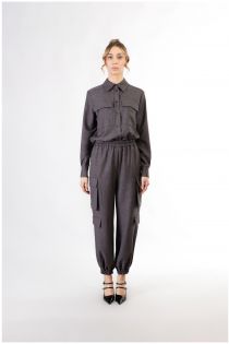 Pantalón cargo con puño y cintura elástica. confeccionado en tela con construcción grisalla. imprescindible en el armario para llevar de día con una camisa o un jersey a juego.