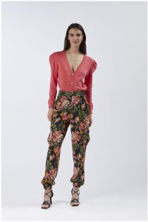 Pantalón tipo cargo con amplios bolsillos laterales y puños elásticos en el bajo confeccionado en sarga de viscosa estampada. estampado exclusivo cafènoir.