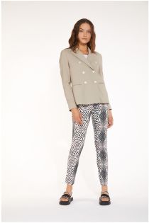 Pantalón chino en tejido superstrech de viscosa elástico estampada. Un modelo que sigue sinuosamente las líneas del cuerpo.