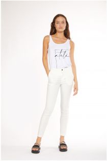 Pantalón chino en tejido superstrech de viscosa elástico. Un modelo que sigue sinuosamente las líneas del cuerpo. No puede faltar en todos los tonos que componen la paletas de colores.