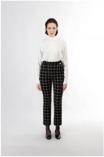 Pantalón cropped. confección en tejido jacquard de cuadros. con un estilo sofisticado a juego con la chaqueta coordinada.