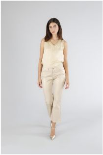 Pantalón cropped en gabardina laminada. ofrecen un ajuste cómodo y son ideales para crear conjuntos elegantes y versátiles. estos pantalones combinan estilo y comodidad para cualquier ocasión.