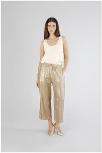 Pantalón palazzo con cintura elástica en tejido mixto de líneas chapadas. prenda fresca y versátil perfecta para ocasiones informales esta primavera-verano.