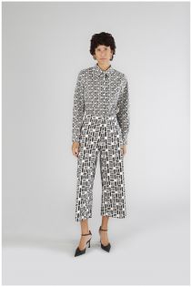 Pantalón palazzo confeccionado en popelín de algodón estampado. perfectos para combinar con la camisa coordinada prometen captar la atención en cada ocasión aportando elegancia y originalidad.