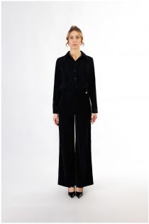 Pantalón corte palazzo. confeccionado en terciopelo texturizado con un elegante efecto iridiscente. modelo sofisticado para combinar con chaqueta o camisa a juego.
