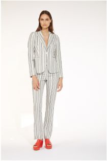 pantalón palazzo en tejido de mezcla de lino con rayas diplomáticas y bolsillos laterales