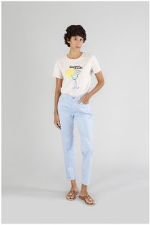 pantalón pitillo cinco bolsillos teñido en prenda light blu