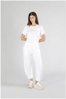 Pantalón sudadera con pinza delantera confeccionado en ligero forro polar elástico. botón joya en puño. prenda versátil que combina practicidad y elegancia.