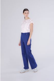 Elegante pantalón acampanado confeccionado en tejido elástico para un ajuste cómodo. la abertura lateral en la parte inferior de la pierna estiliza la silueta ideal para looks modernos y femeninos. la modelo mide 171 cm y lleva la talla s. corte: regular.