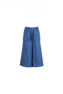 Pantalones amplios de algodón con fajín y especiales bolsillos de parche aplicados.