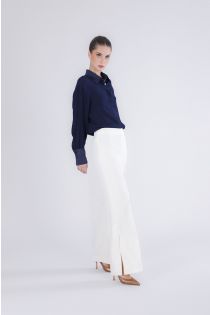 Pantalones anchos con abertura lateral confeccionados en cadí fluido. elegantes y estilizados ofrecen un corte cómodo y femenino. perfectos para looks refinados de día y de noche. la modelo mide 175 cm y lleva una talla s. corte: regular.
