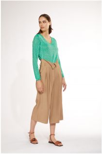 Pantalón coulotte de ajuste holgado realizado en un tejido tencel ligero y confortable. Una construcción especial la del cinturón con vuelta que hace que sea perfecta para llevar con una camiseta por dentro y realzar este detalle de estilo.