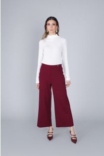 Pantalón ancho por encima del tobillo en tejido elástico. Diseño versátil y cómodo, perfecto para looks casuales y dinámicos. La modelo mide 173 cm y lleva una talla S.