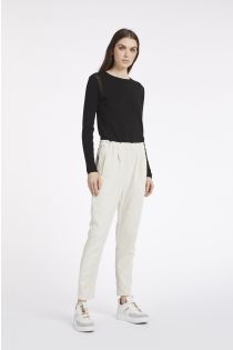 Aspecto «sporty chic» para estos pantalones realizados en un cómodo terciopelo cotelé con alternancia de pana ancha y pana estrecha.