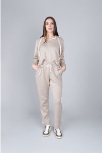 Joggers cálidos de felpa de viscosa y lúrex con cintura elástica y cordón. Comodidad y estilo se unen en una prenda casual, práctica y moderna. Corte regular. La modelo mide 172 cm y lleva una talla S.