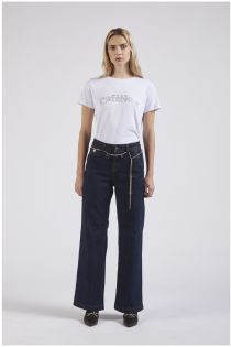 Vaqueros vestibilidad palazzo con cinturón joya realizados en tela denim.
