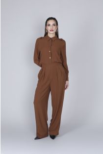 Pantalón palazzo de tejido fluido con pinzas delanteras y cintura elástica en la espalda. Estilo casual, corte regular para una comodidad impecable. Perfecto para cualquier ocasión. La modelo mide 172 cm y lleva una talla S.