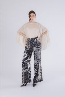 pantalones palazzo de satén estampado multicolor patchwork