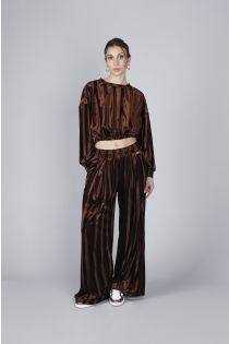 Pantalón palazzo de terciopelo degradado con un acabado luminoso y tacto suave. Cintura elástica para una comodidad absoluta. Corte regular. La modelo mide 173 cm y lleva una talla S.