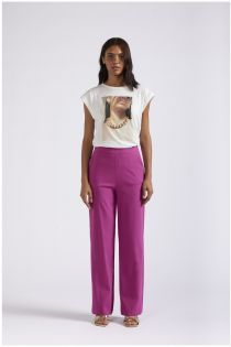 Pantalón con vestibilidad palazzo en tejido superstretch con efecto flameado. bolsillos laterales y cierre de cremallera lateral.
